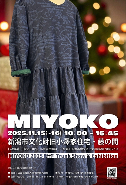 この度、きもの生地から作る洋服ブランドMIYOKOの新作展を開催させていただきます。